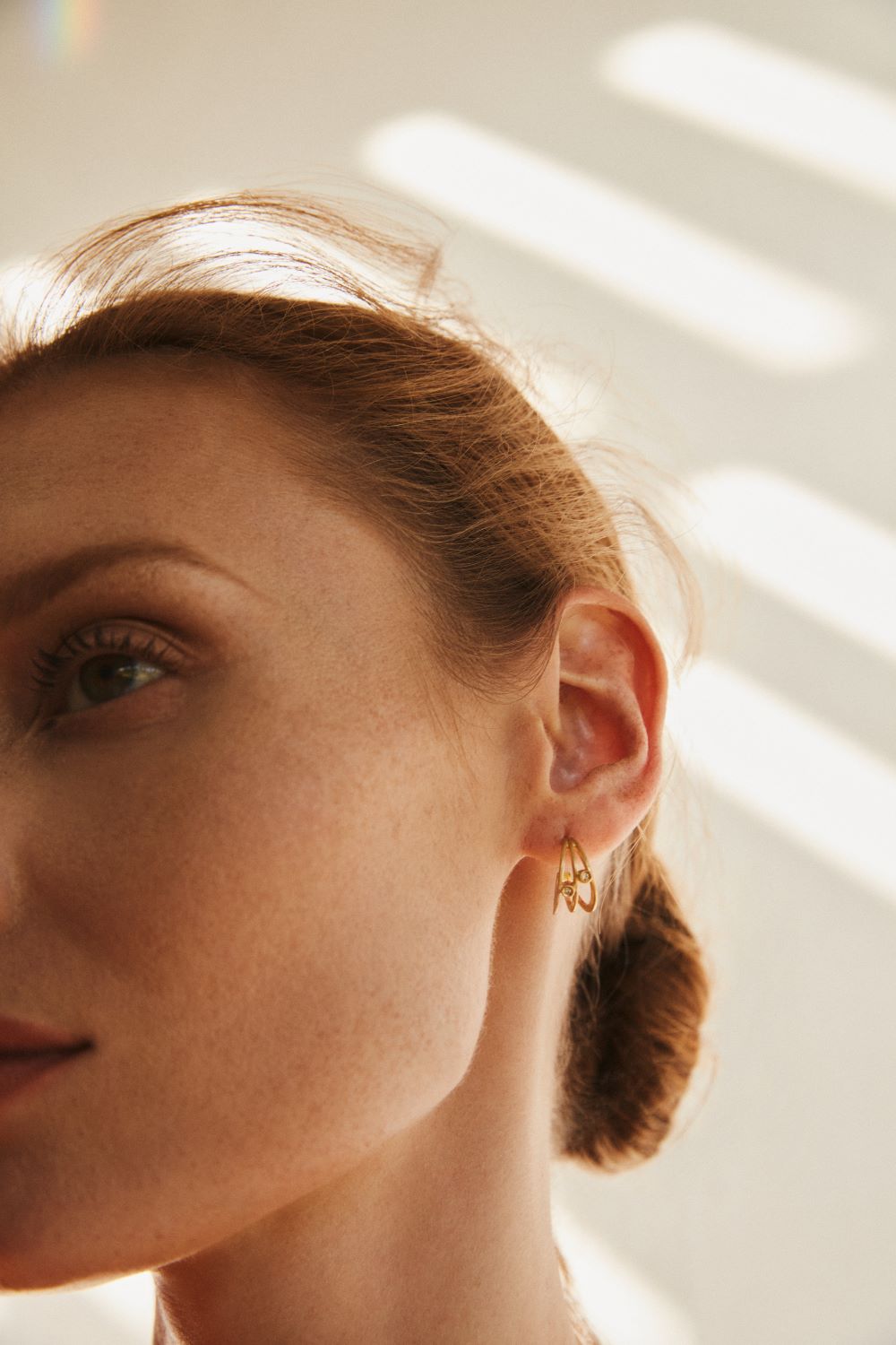 Argolas em ouro amarelo 18k com acabamento fosco e 4 diamantes redondos brilhantes totalizando 4 pontos.