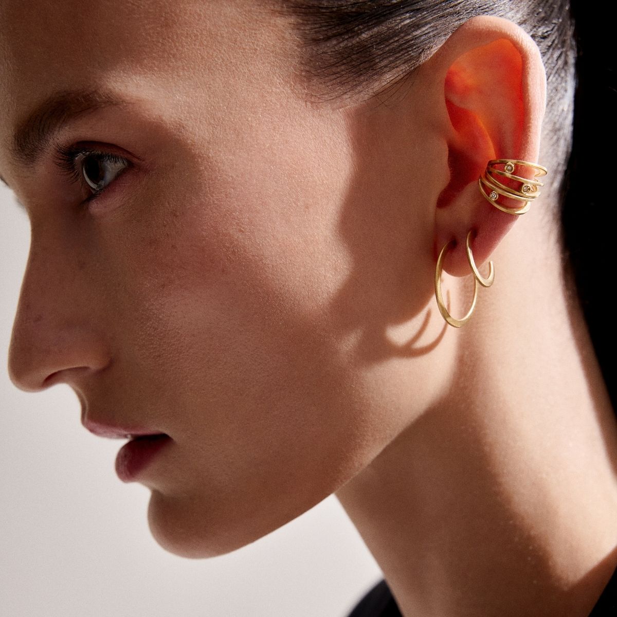 Argolas em ouro amarelo 18k com acabamento fosco.