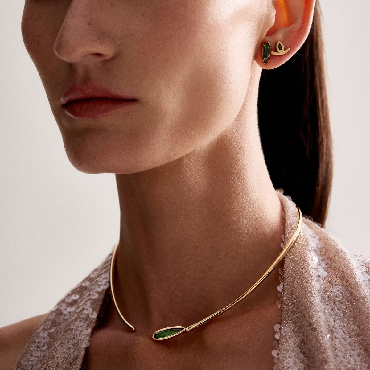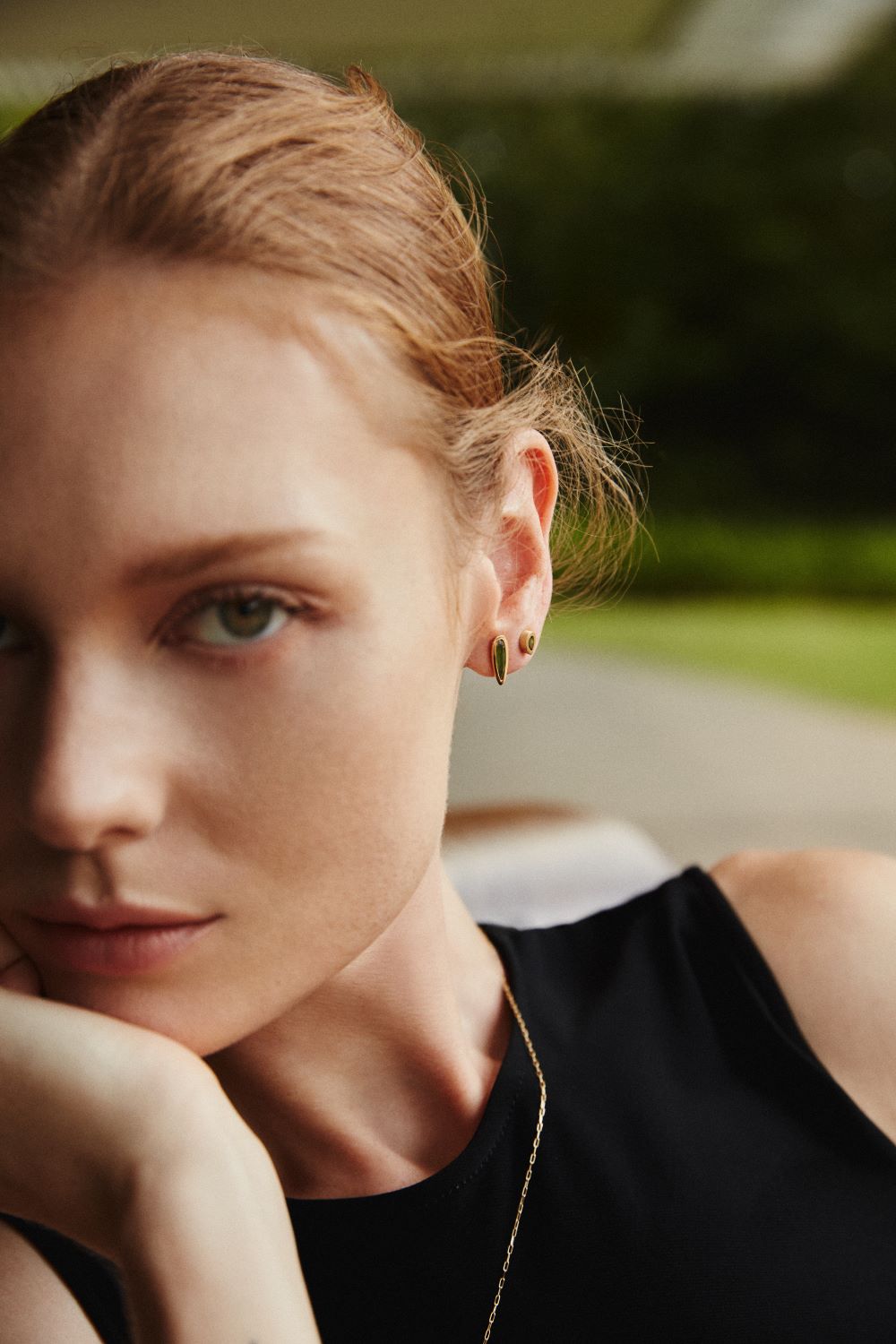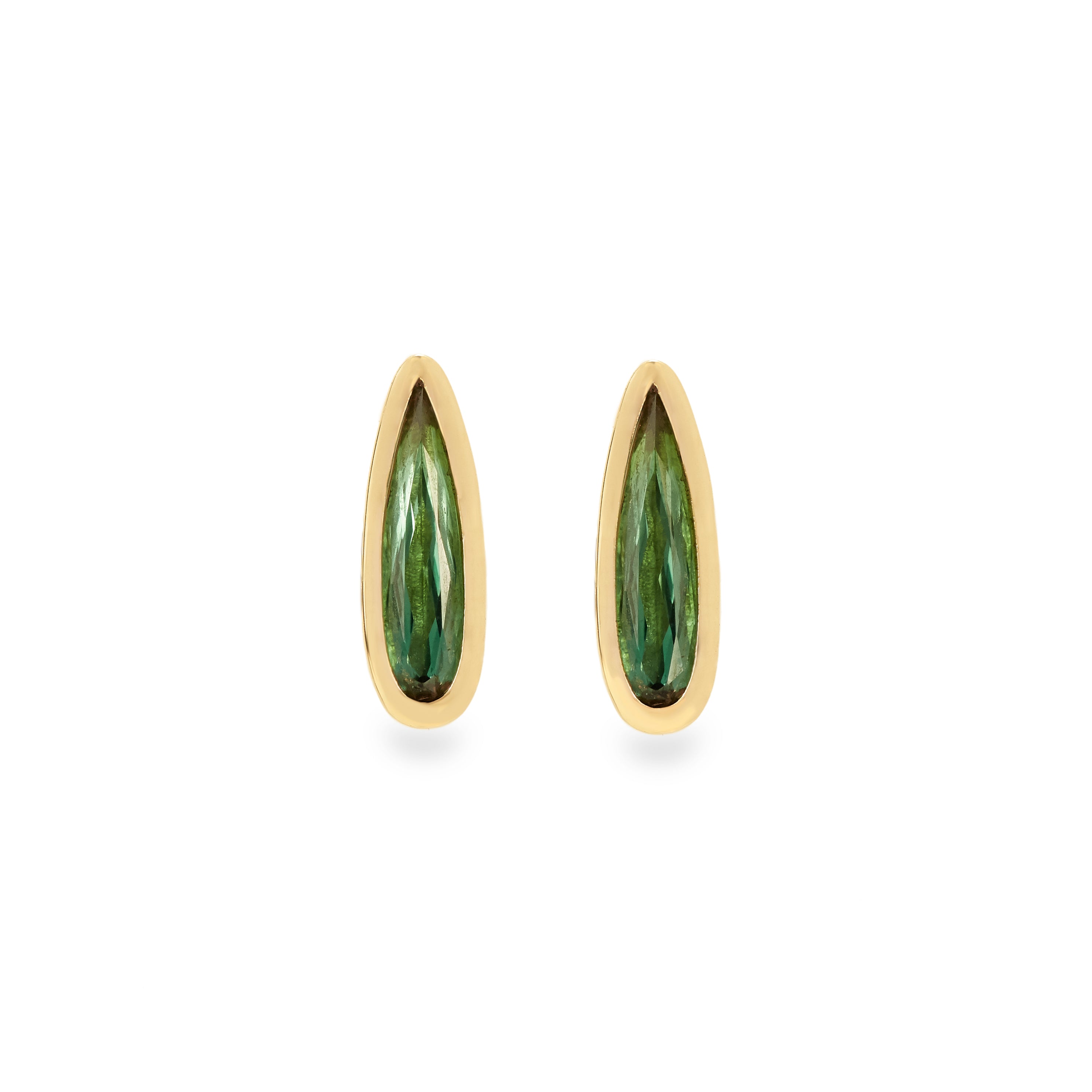 Brinco em ouro amarelo e turmalinas verdes de aproximadamente 1ct, com acabamento polido