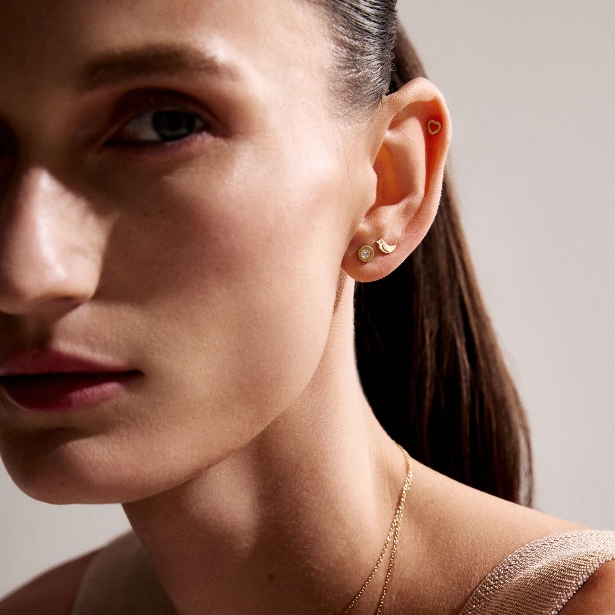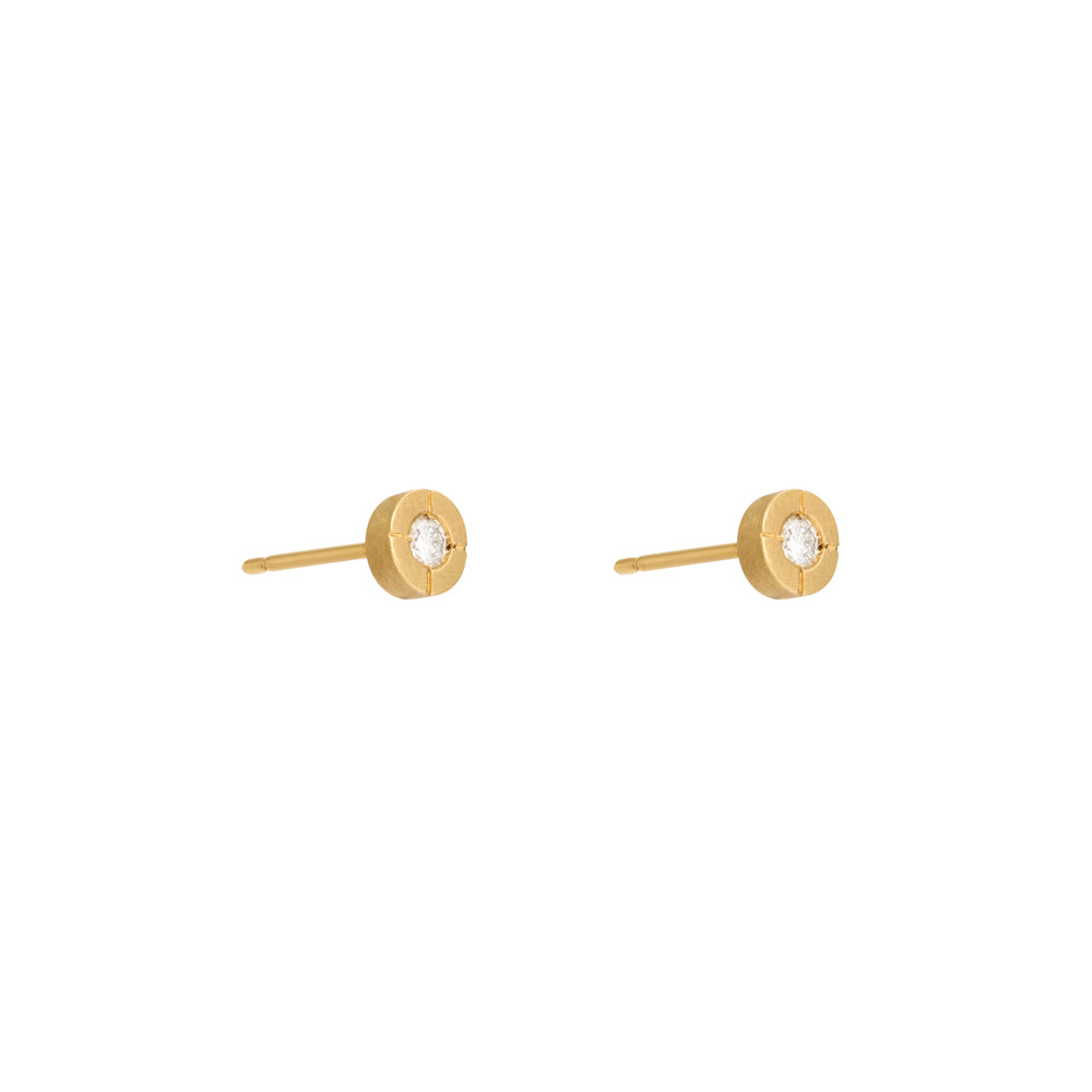 Brinco em ouro amarelo 18k, com diamante redondo brilhante totalizando 12 pontos e acabamento fosco.