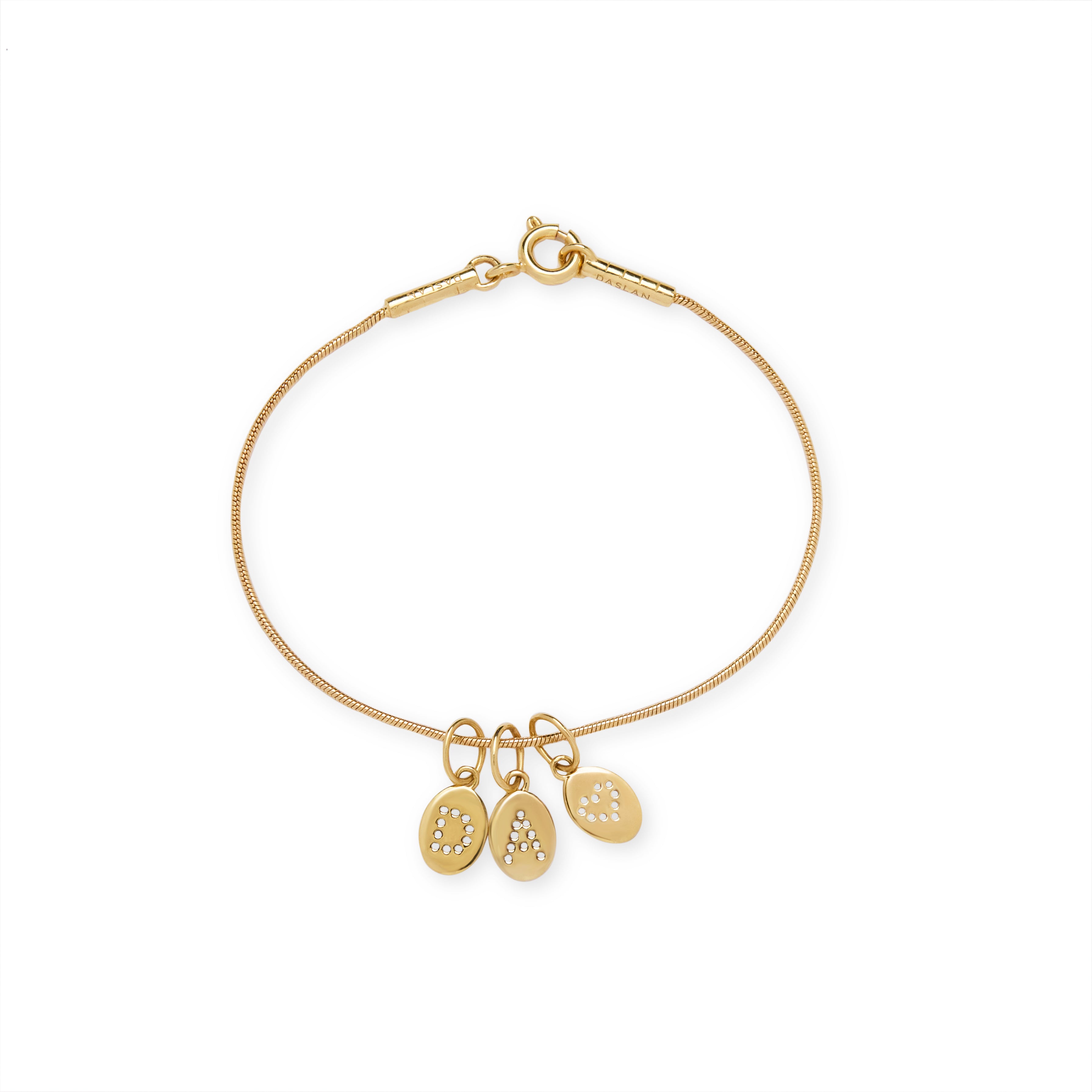 Personalized plaque pendants with initials or symbols in 18k gold, with a matte finish.