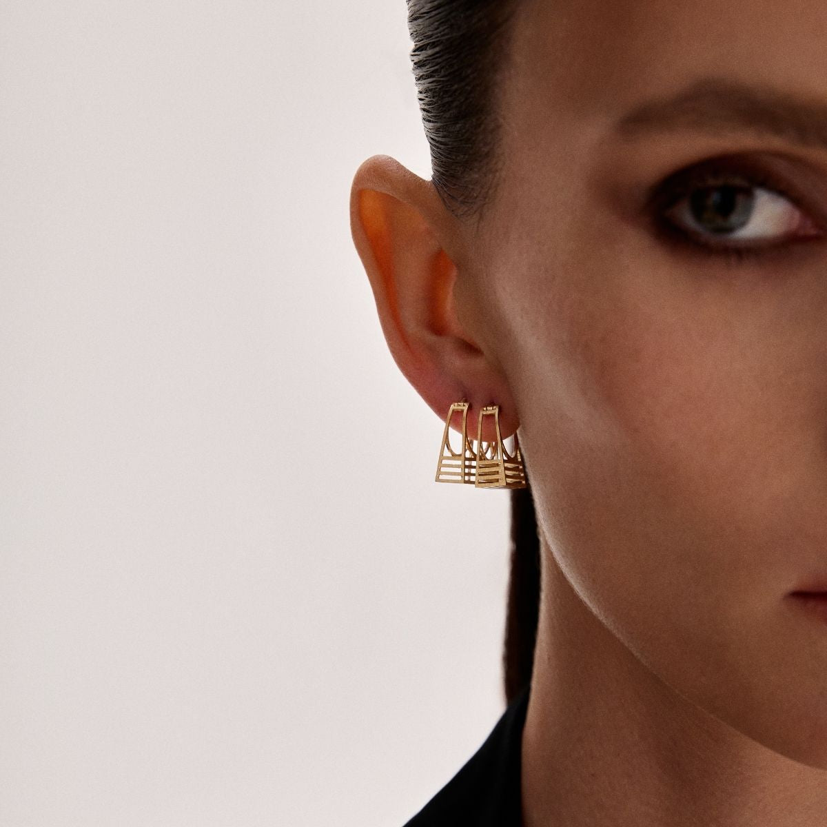 Brinco em ouro amarelo ou branco, com fecho italiano e acabamento fosco. Dimensões aproximadas (comprimento x largura x altura): 1,8cm x 0,7cm x 1,6cm e diâmetro da argola: 12mm. Produto sob encomenda, prazo de entrega de até 40 dias.