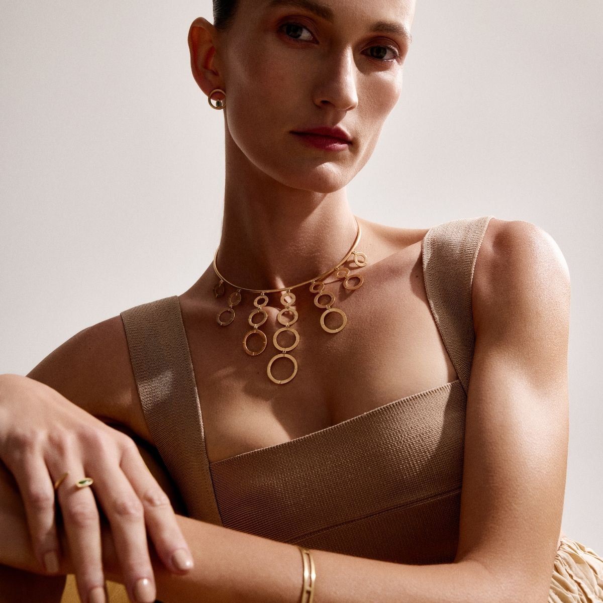Colar em ouro amarelo ou branco, com acabamento fosco.