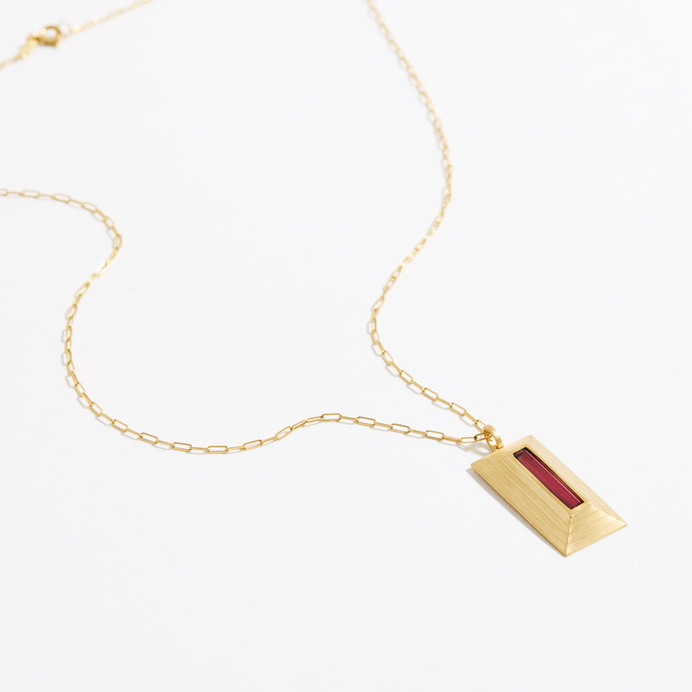 Pingente RR em ouro amarelo 18k com acabamento fosco e rubelita. Medidas aproximadas: 3.2cm x 1.5cm. Não acompanha corrente.